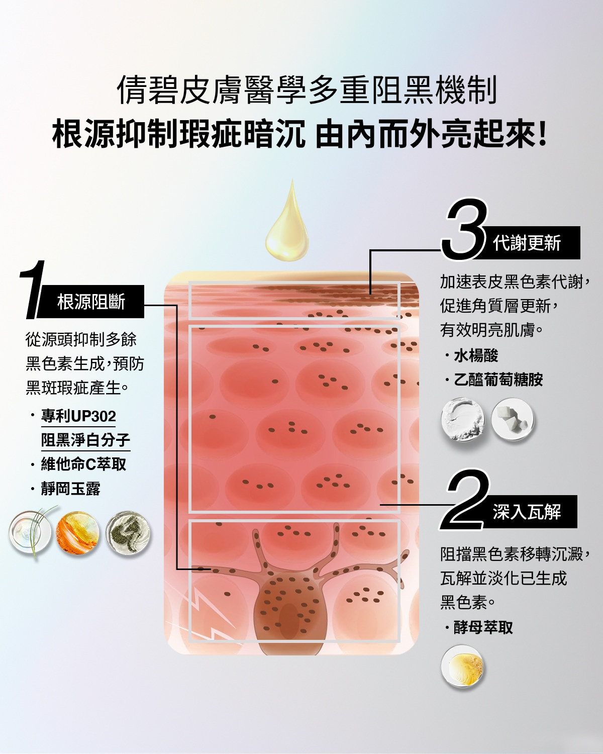 ■酵母萃取—瓦解暗沉物的堆積,預防黑斑生成